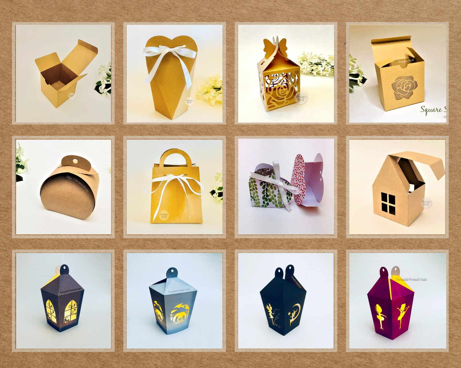 You will get: 71 design files in SVG file format, 3D Box Cuttable Templates, Envelopes, Gift Bags, and Gift Tags