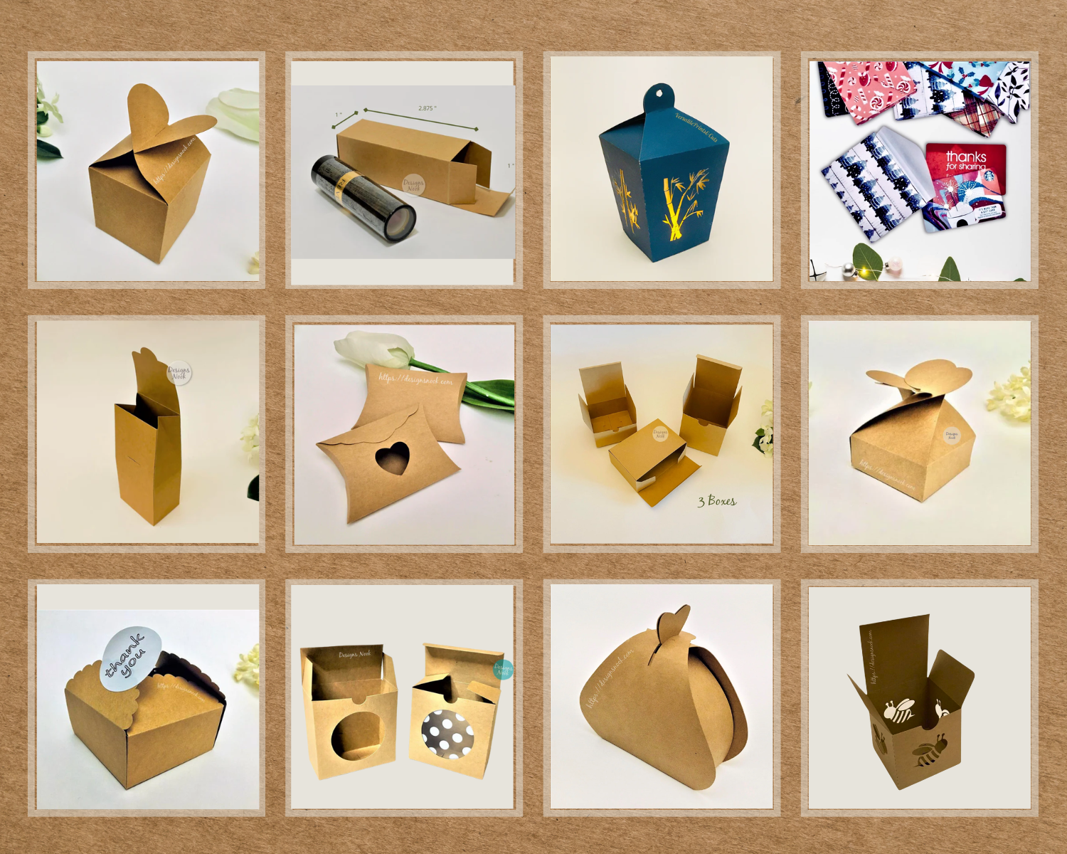 Please note that if you would like to resize the templates, please make sure you resize proportionately. Changing only one side or one panel would affect the overall design and might not fit together after cutting.